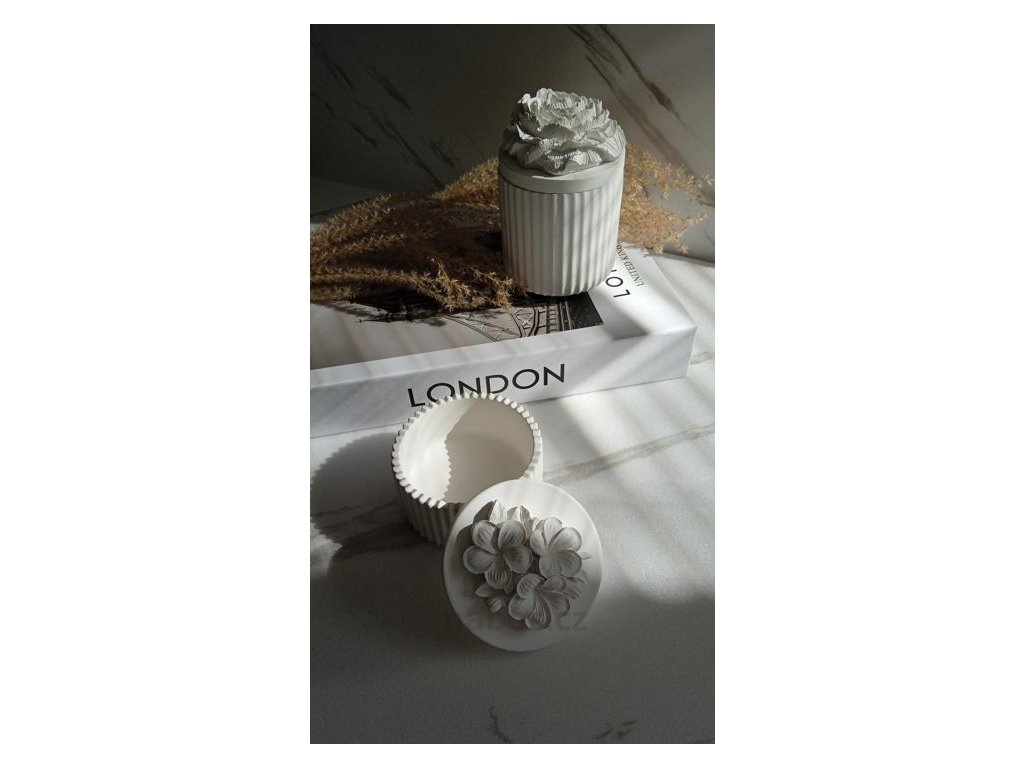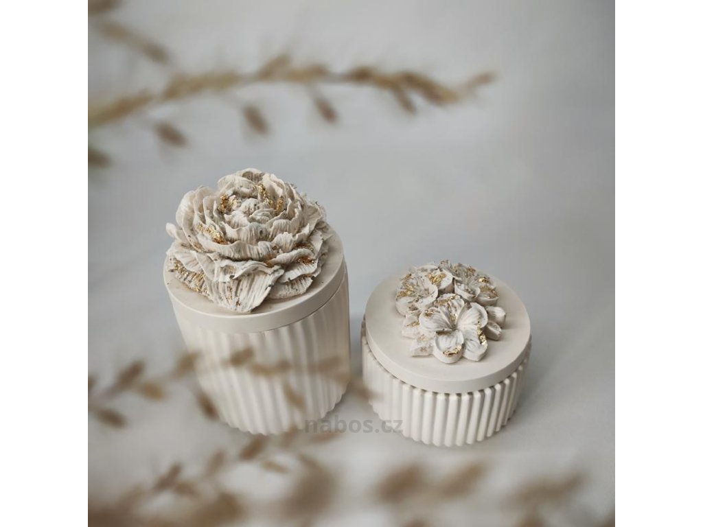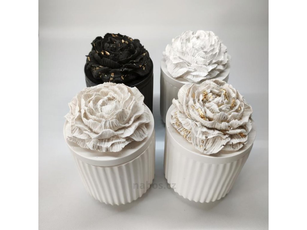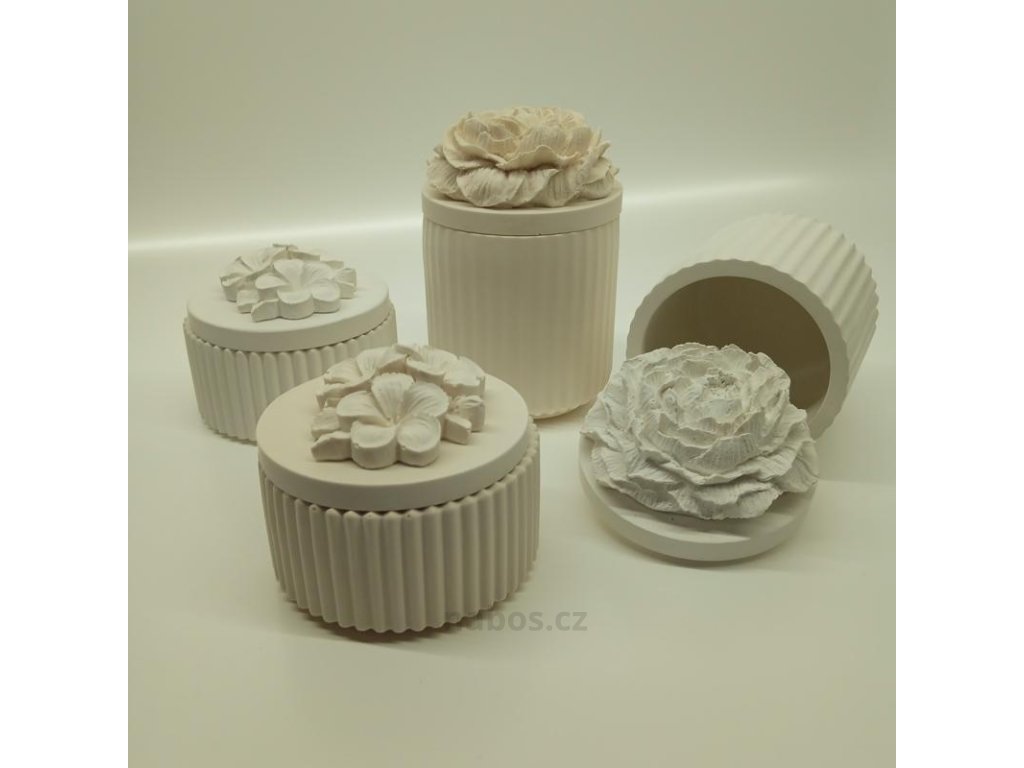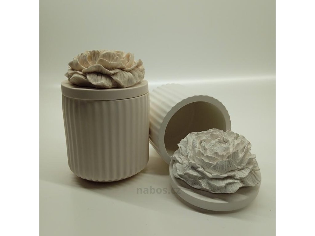 Průměr: 7,5cm, výška včetně víka: 11,5 cm