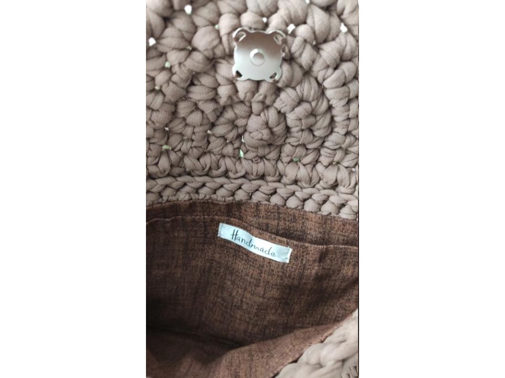 • kakao - bavlněná podšívka s kapsičkou hnědé barvy, stříbrné magnetické zapínání a doplňky, popruh stříbrný řetízek délky 97cm