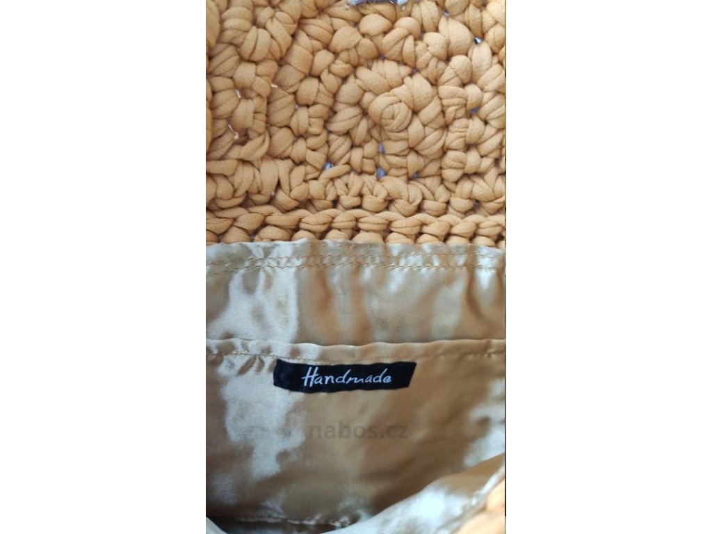 • karamel - bavlněná podšívka s kapsičkou béžové barvy, zlaté magnetické zapínání a doplňky, popruh zlatý řetízek délky 97cm